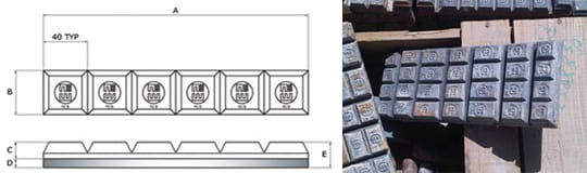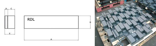 Los productos REC-IMPACT se fabrican en base a Metal blanco Cromo Molibdeno laminado, metalúrgicamente unido a una plancha de hierro dulce alcanzando una unión extremadamente fuerte y segura. Metal blanco: modificado AS2027 15/3 Cr Mo con dureza de terminación de 700 HB (65Rc) y carburos primarios de 1500 Vickers.
